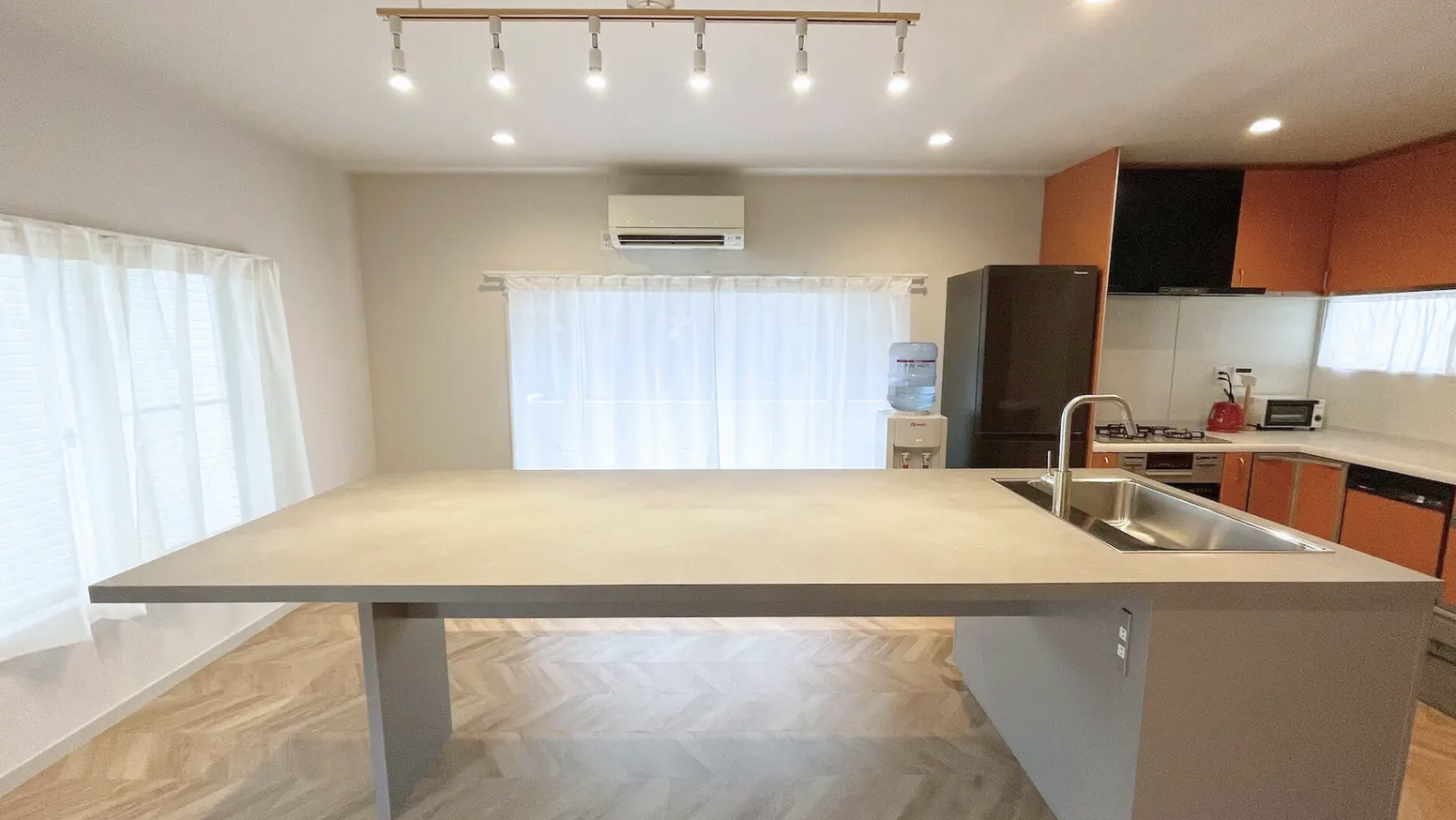 - 作業+会話:アイランドキッチンでゲストとの距離が程よく、居心地よし