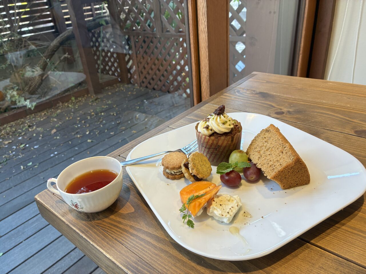 テラスもあり、緑に囲まれた開放的な雰囲気で、